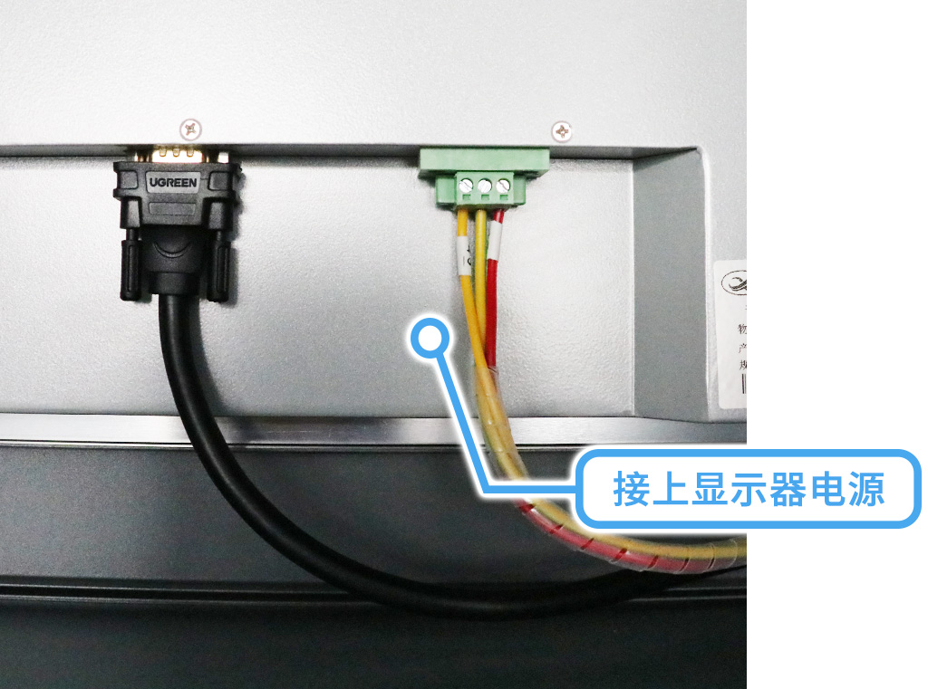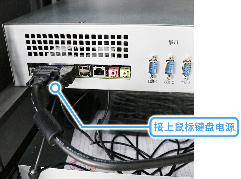翻轉(zhuǎn)到主機(jī)背面,打開(kāi)后接上顯示器電源,鼠標(biāo)鍵盤(pán)電源;